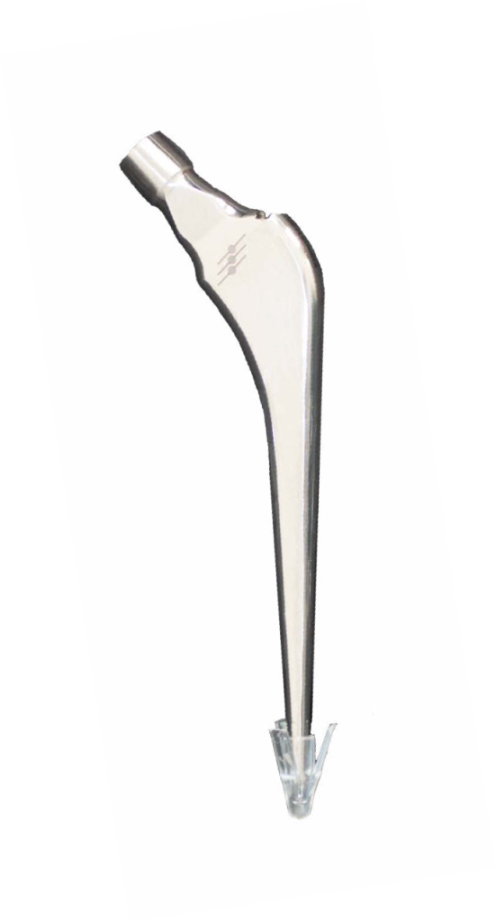 REDUCED LATERAL SHOULDER TO FACILITATE EASE OF INSERTION BULLET-SHAPED DISTAL TIP MINIMIZES POINT CONTACT TO DISCOURAGE FRACTURE DURING IMPACTION AND TO ASSISST THIGH COMFORT.