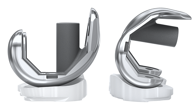 This unique system provides medial-pivot articulation, distal/posterior augments, and added stability with cemented and canal fitting stems.